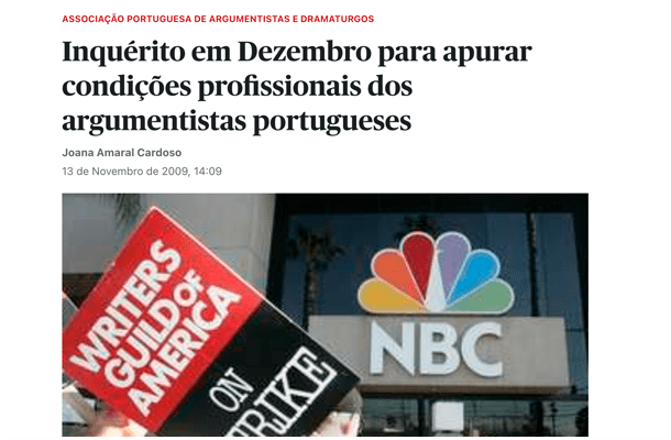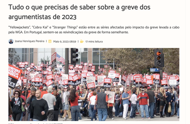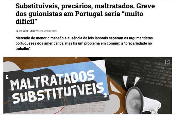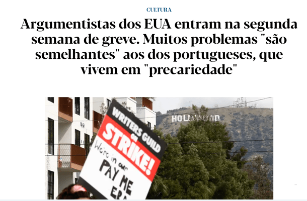“Substituíveis, precários, maltratados. Greve dos guionistas em Portugal seria “muito difícil”. Mercado de menor dimensão e ausência de leis laborais separam os argumentistas portugueses dos americanos, mas há um problema em comum: a “precariedade no trabalho”.”