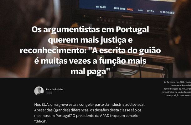“Reportagem. Ser argumentista, um retrato do setor em Portugal”